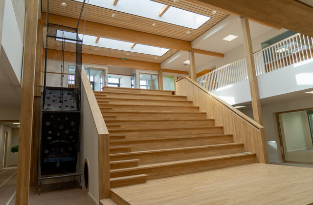 IKC De Brink is ontworpen als beweegschool: een stimulerende leeromgeving waarin beweging centraal staat. Een tribunetrap en diverse beweegroutes door het gebouw nodigen uit tot actief gebruik, elke dag opnieuw.